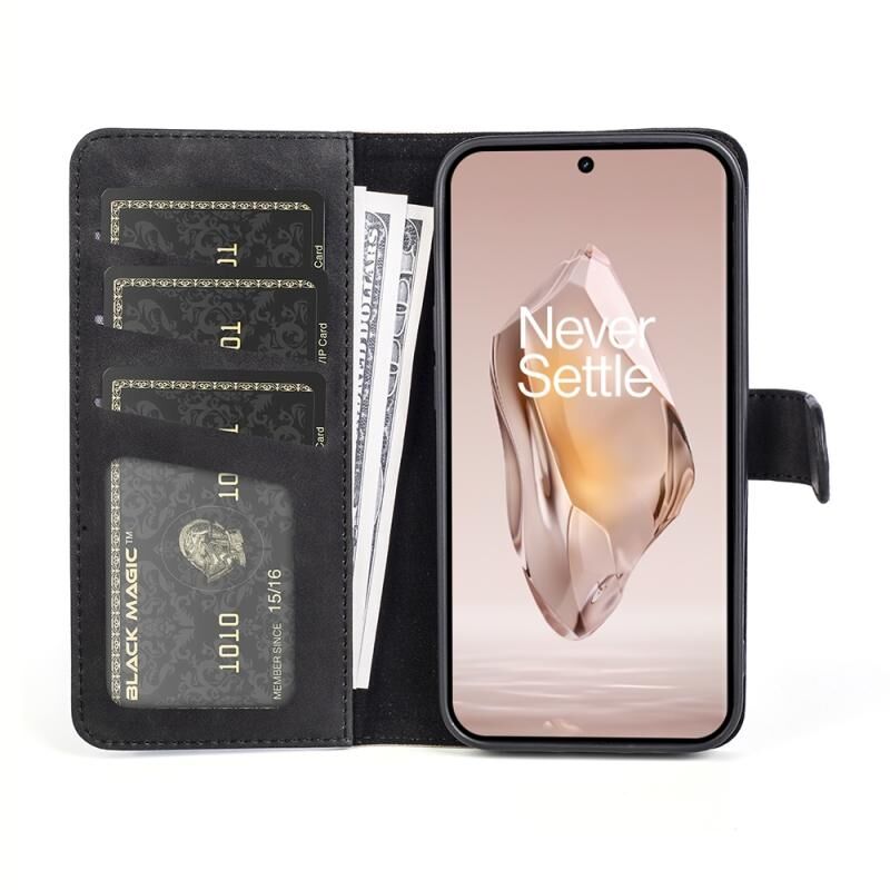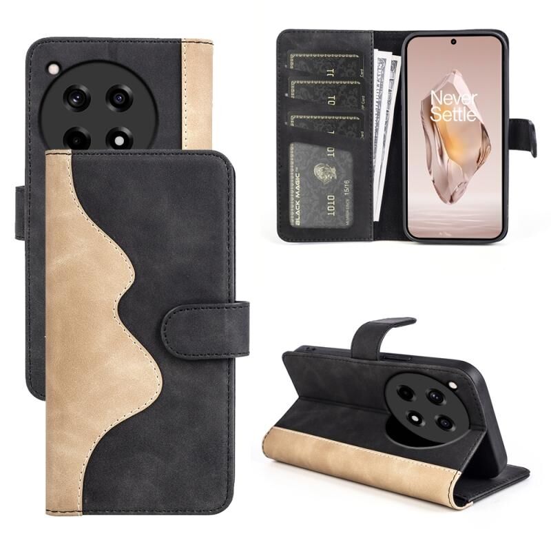Για OnePlus 12R ραφή οριζόντια Flip δέρμα τηλέφωνο υπόθεση (μαύρο)