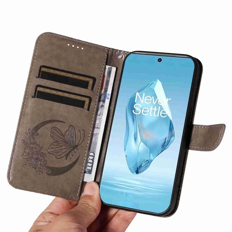 Θήκη τηλεφώνου από δέρμα με ανάγλυφο σχέδιο πεταλούδας Swallowtail για OnePlus 12R (Μπλε)