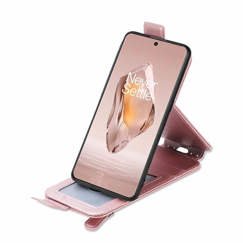 Για OnePlus 12R φερμουάρ πορτοφόλι κάθετη Flip δέρμα τηλέφωνο υπόθεση (Rose Gold)