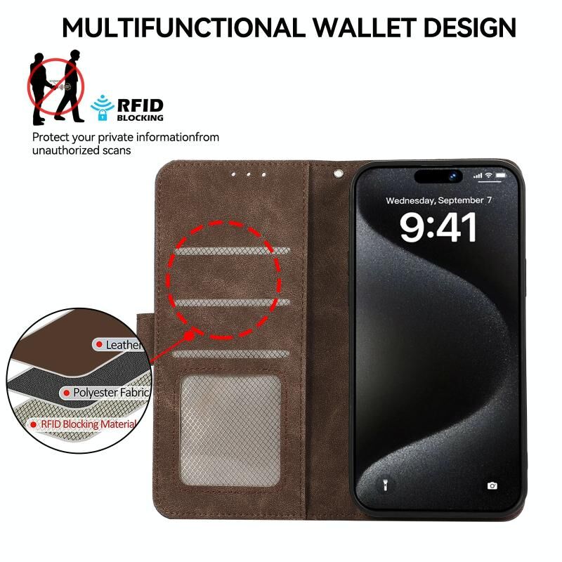 4. Λειτουργία Πορτοφολιού: Η δερμάτινη θήκη είναι εξοπλισμένη με υποδοχές καρτών για την τοποθέτηση καρτών και ενός μικρού ποσού μετρητών.