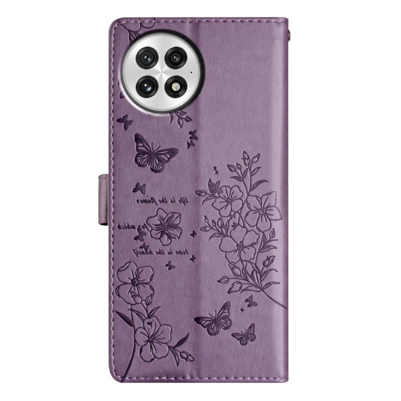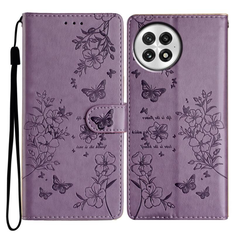 For OnePlus 13 Butterflies and Flowers Leather Phone Case(Purple)
