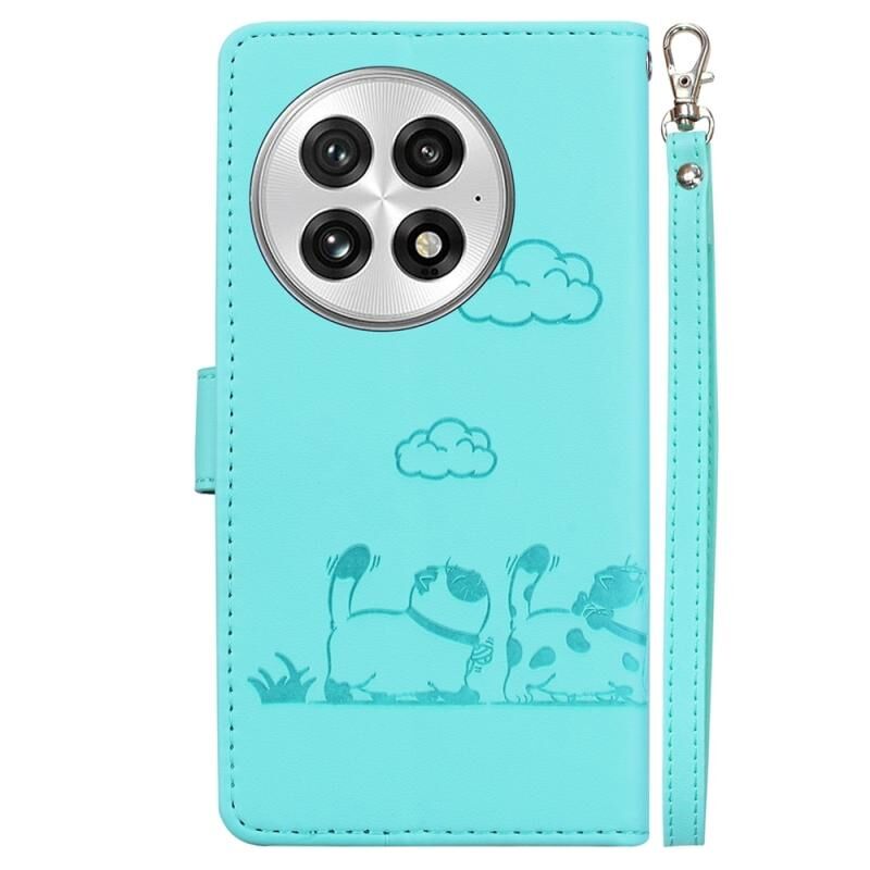 Θήκη τηλεφώνου από δέρμα με χαριτωμένες γάτες για OnePlus 13 (Πράσινο) με προστασία RFID