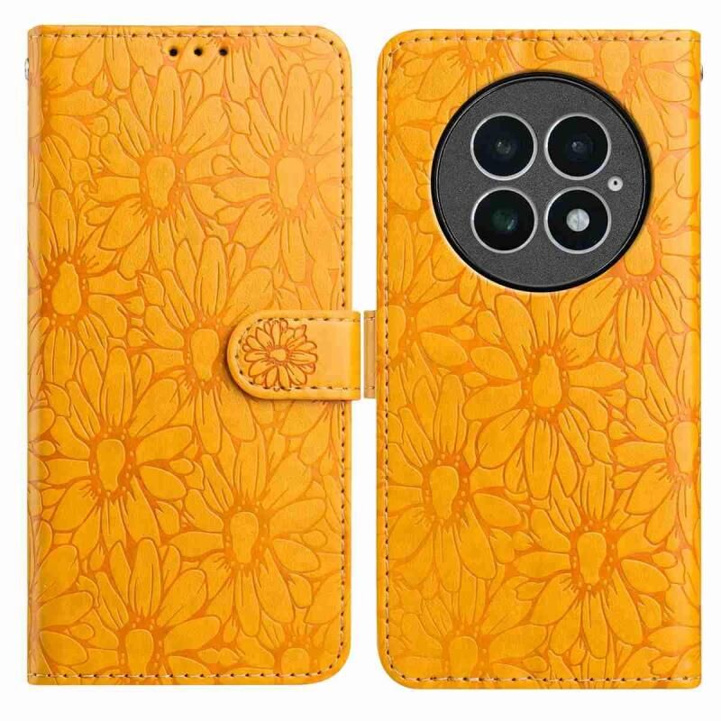 For OnePlus 13 Daisy Embossed Leather Phone Case(Yellow)
