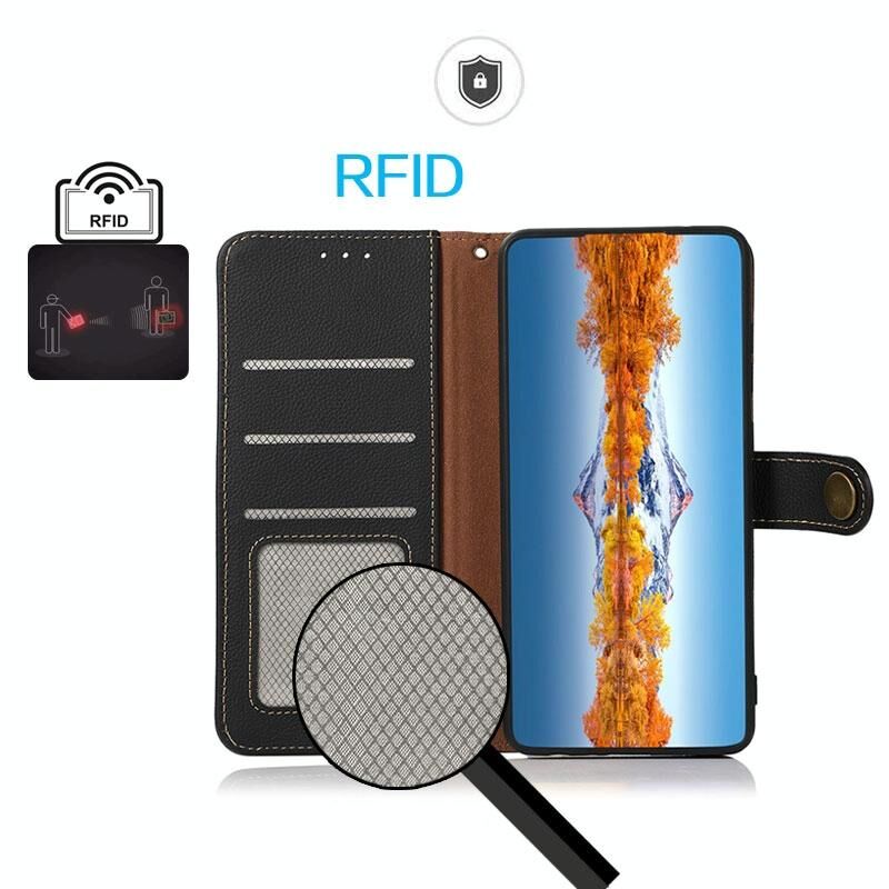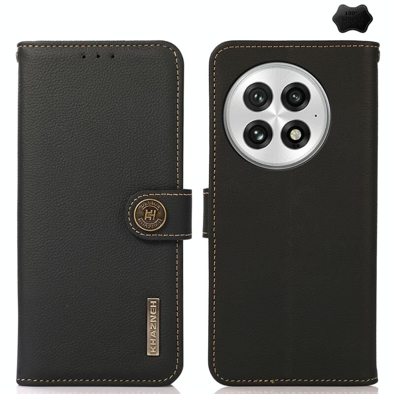 Θήκη τηλεφώνου OnePlus 13 KHAZNEH Custer από γνήσιο δέρμα με προστασία RFID (Μαύρο)