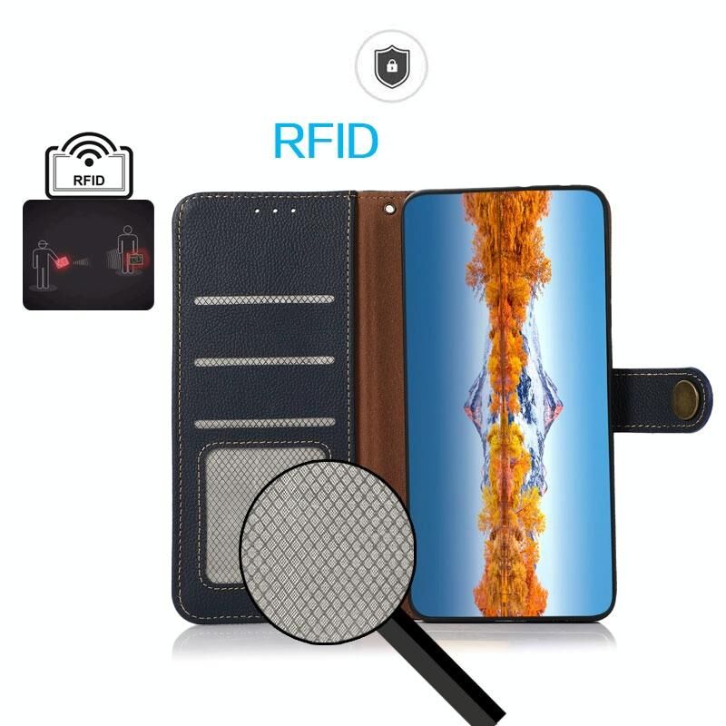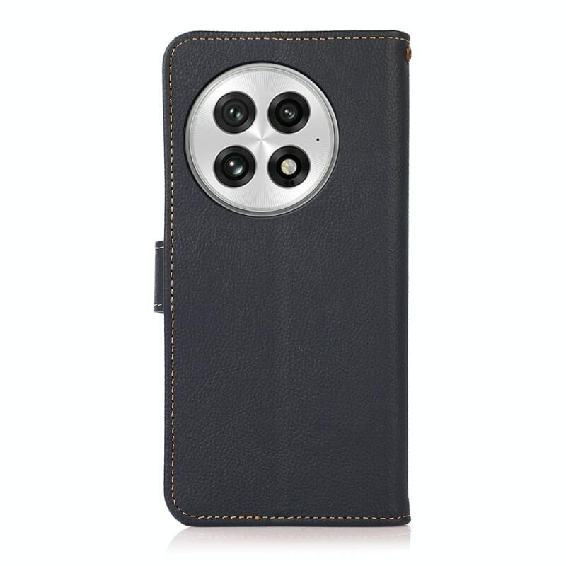 Θήκη τηλεφώνου OnePlus 13 KHAZNEH Custer από γνήσιο δέρμα με προστασία RFID (Μαύρο)