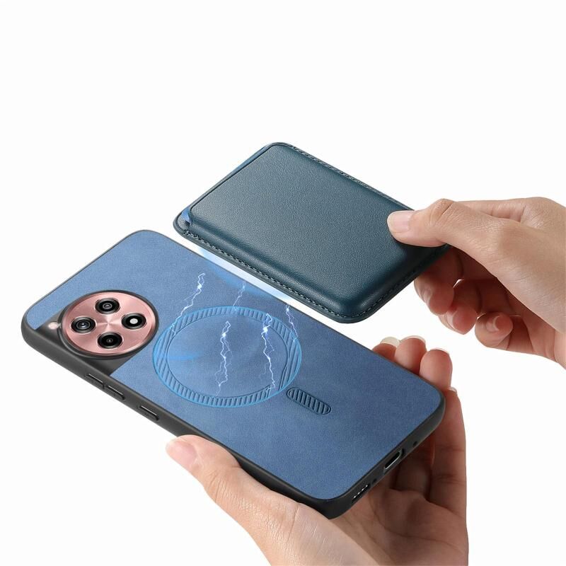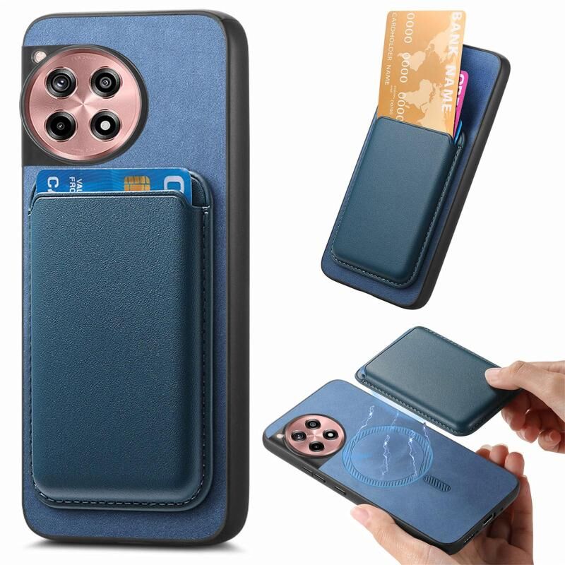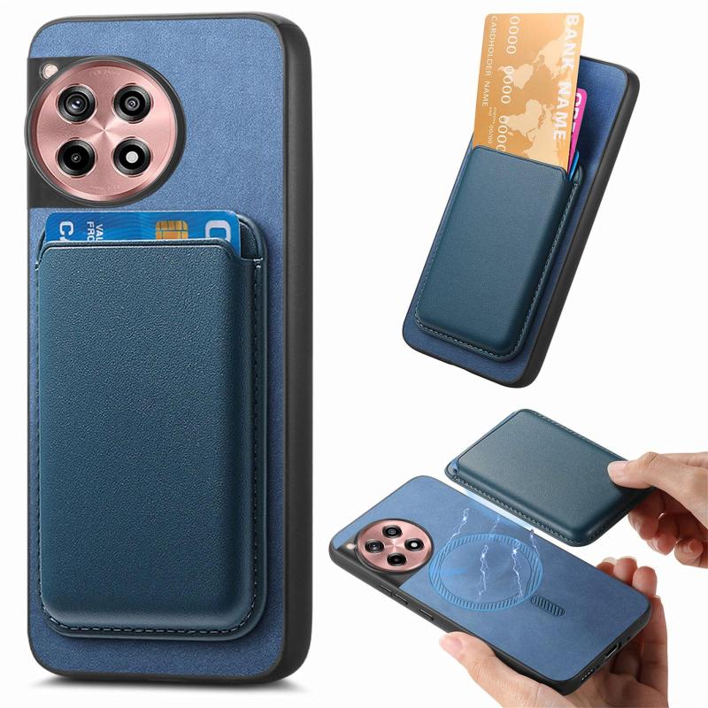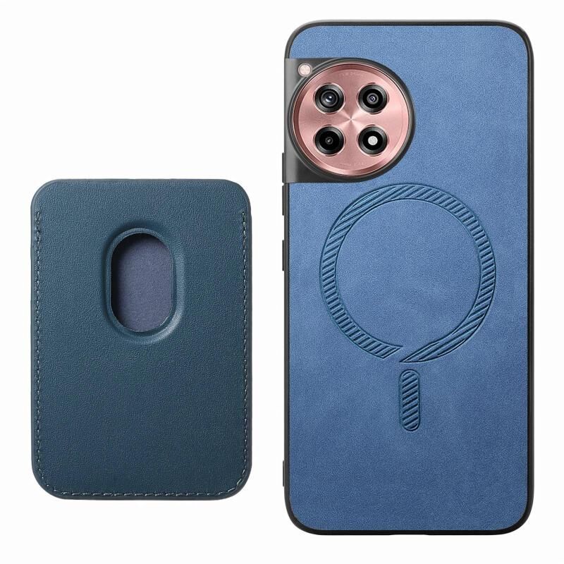 For OnePlus 13 Retro Magsafe Card Bag PU Back Cover Phone Case(Blue)