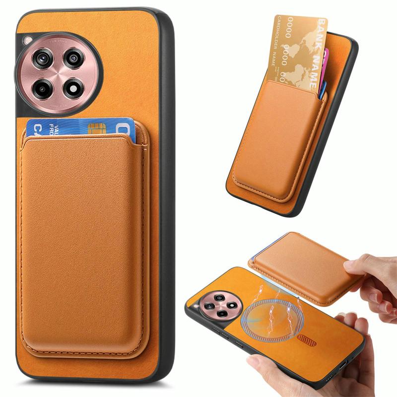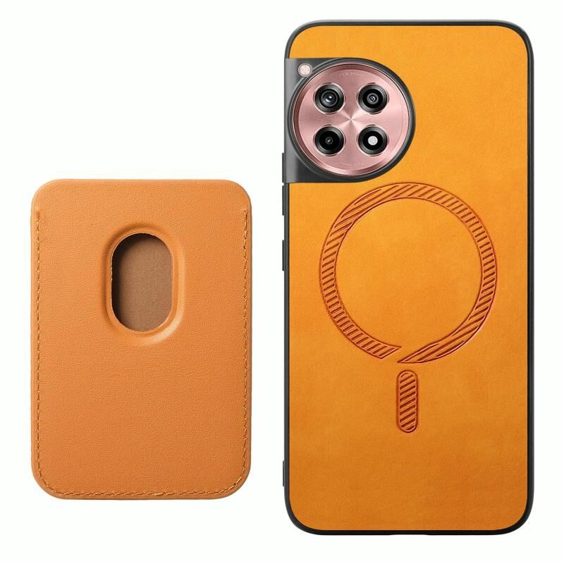 For OnePlus 13 Retro Magsafe Card Bag PU Back Cover Phone Case(Yellow)