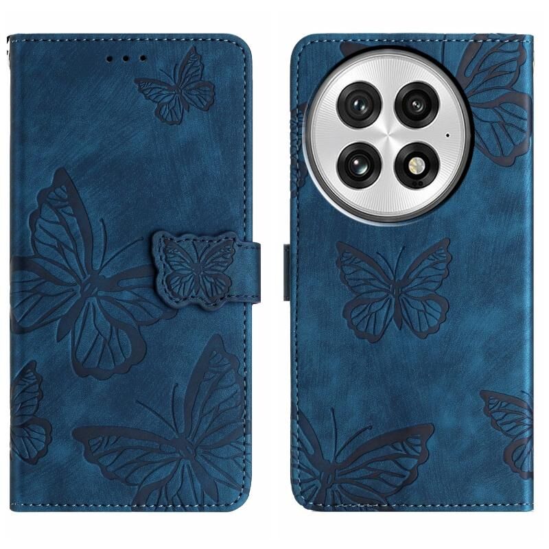 Θήκη τηλεφώνου OnePlus 13 με δερμάτινη υφή, ανάγλυφο σχέδιο πεταλούδας (Μαύρο)