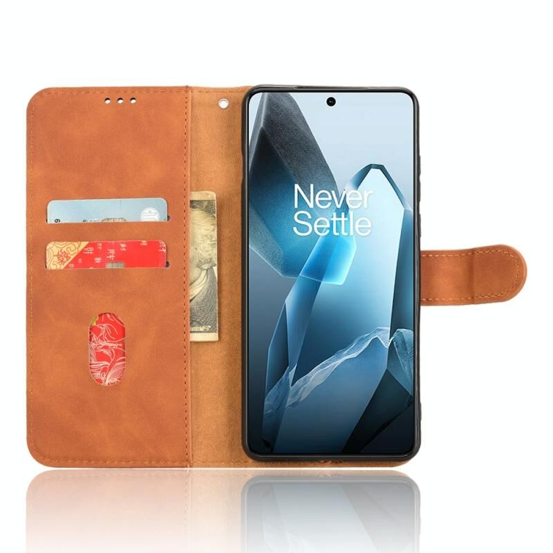 Για OnePlus 13 δέρμα αίσθηση μαγνητική Flip δέρμα τηλέφωνο υπόθεση (καφέ)