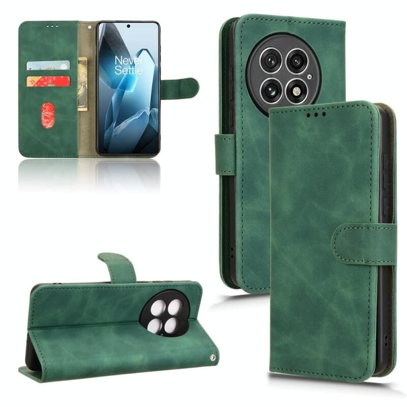 Για OnePlus 13 δέρμα αίσθηση μαγνητική Flip δέρμα τηλέφωνο υπόθεση (πράσινο)