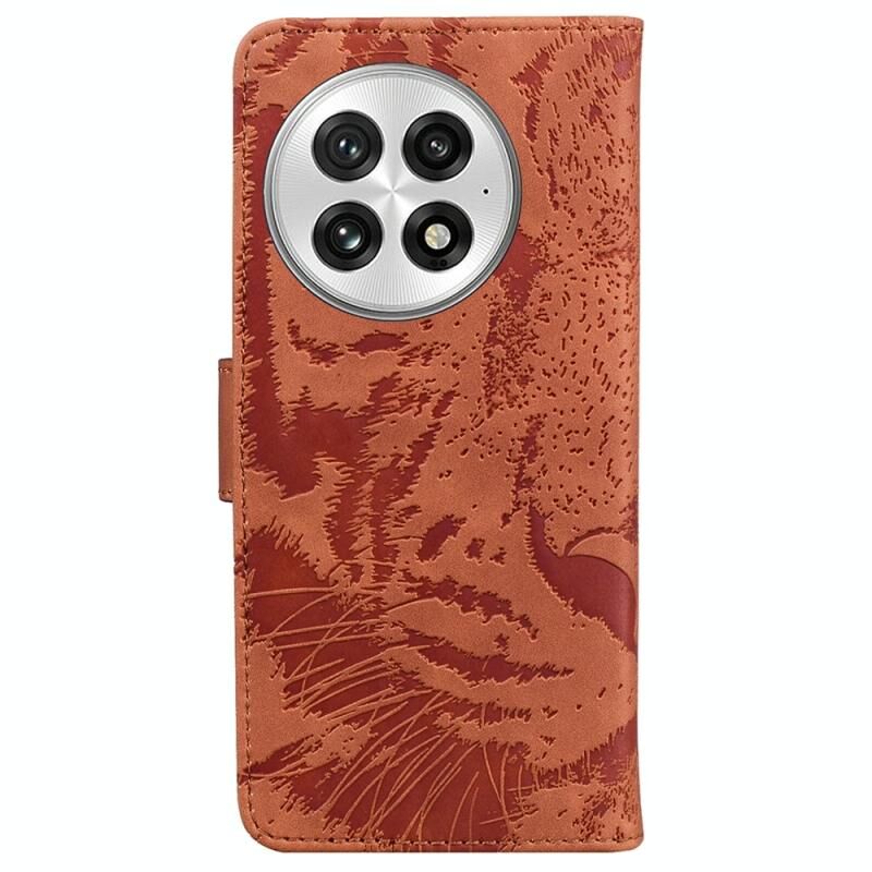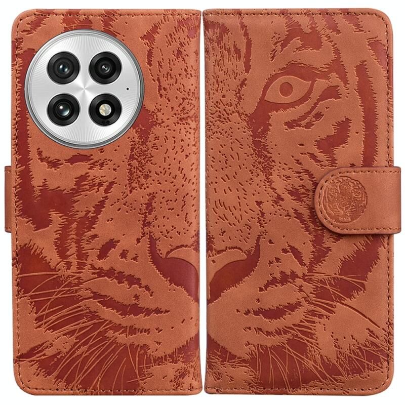 Θήκη τηλεφώνου από δέρμα με σχέδιο τίγρης σε ανάγλυφο για OnePlus 13 (Μαύρο)