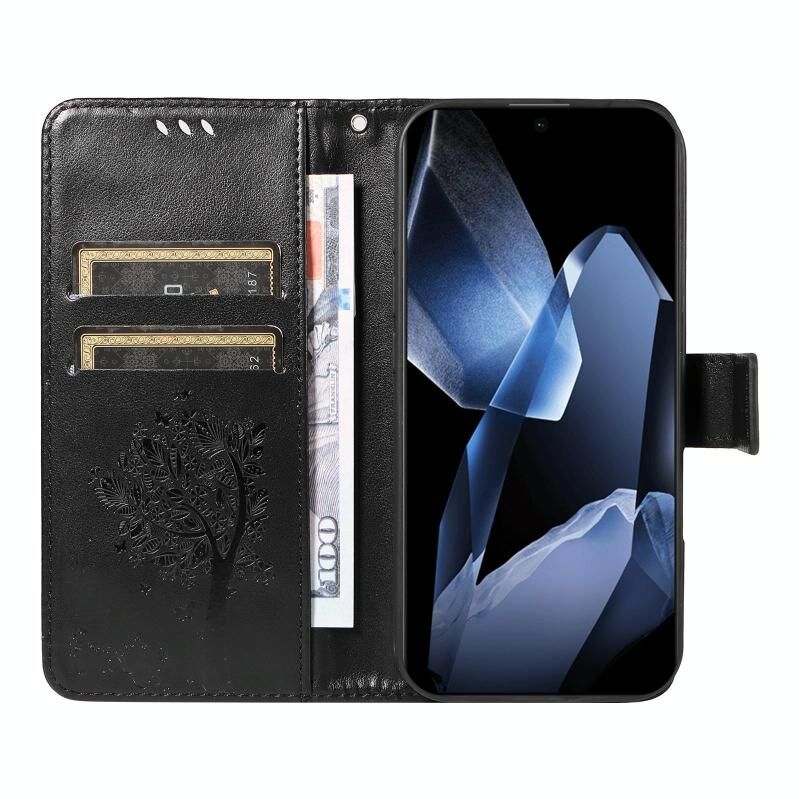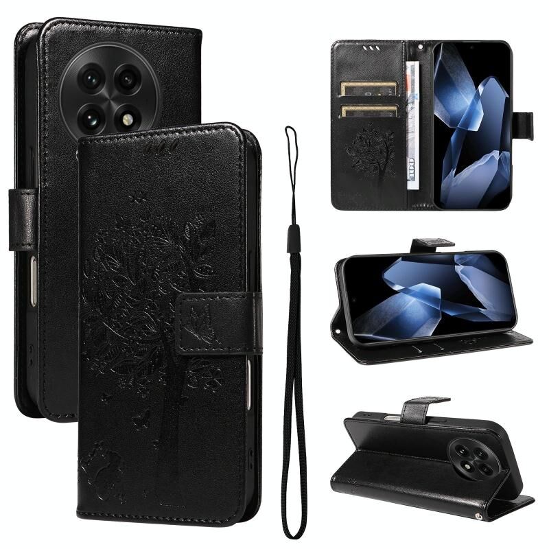 Θήκη τηλεφώνου από δέρμα με σχέδιο Tree & Cat σε στυλ flip για OnePlus 13 (Ροζ)