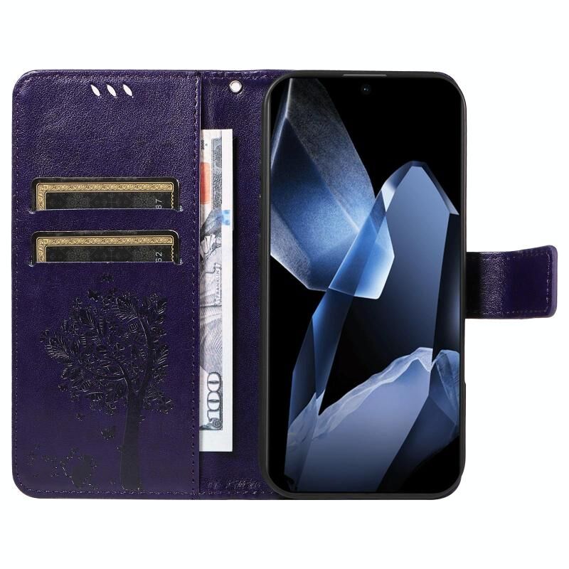 Θήκη τηλεφώνου από δέρμα με σχέδιο Tree & Cat σε στυλ flip για OnePlus 13 (Ροζ)