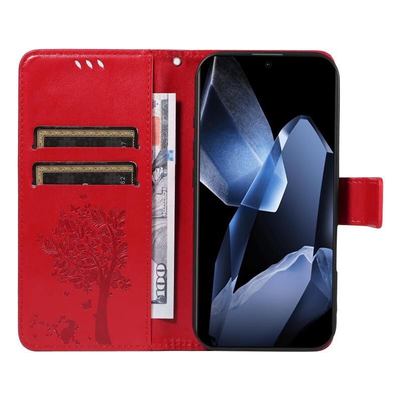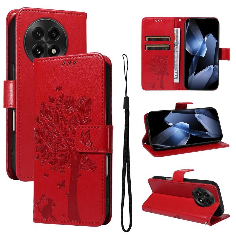 Θήκη τηλεφώνου από δέρμα με σχέδιο Tree & Cat σε στυλ flip για OnePlus 13 (Ροζ)