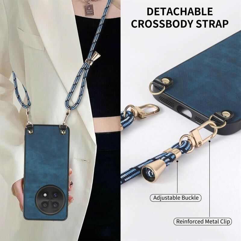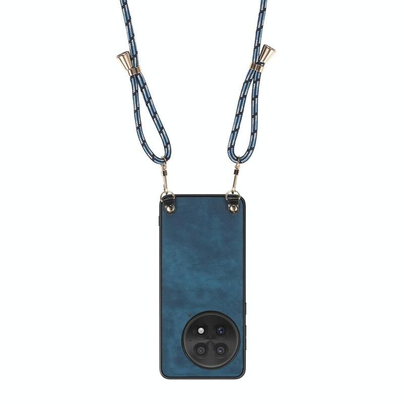 For OnePlus 13 Vintage Leather PC Back Cover Phone Case with Crossbody Strap(Blue)