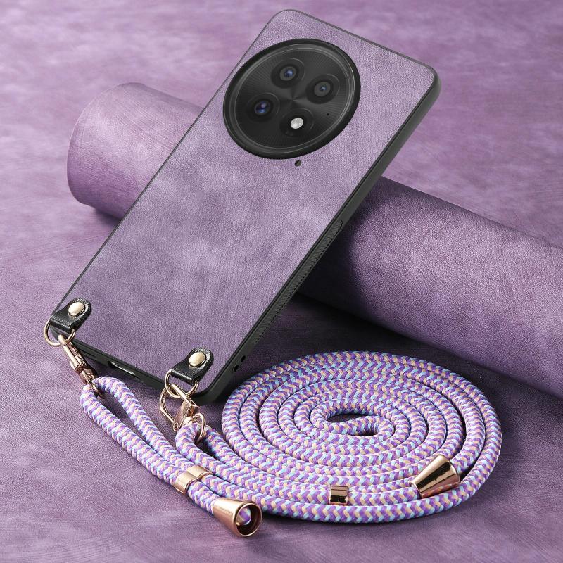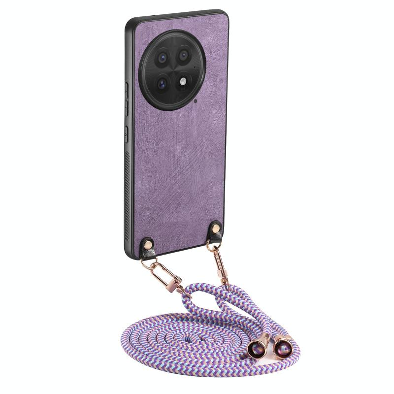 For OnePlus 13 Vintage Leather PC Back Cover Phone Case with Crossbody Strap(Purple)