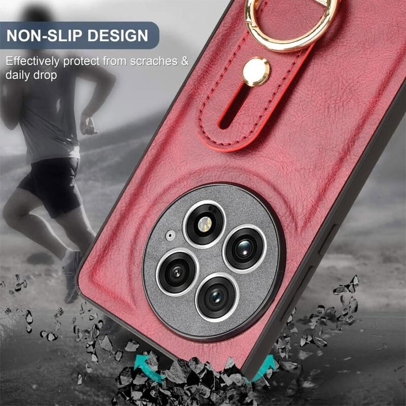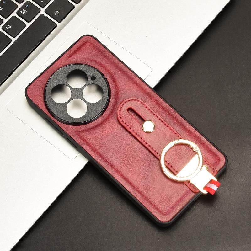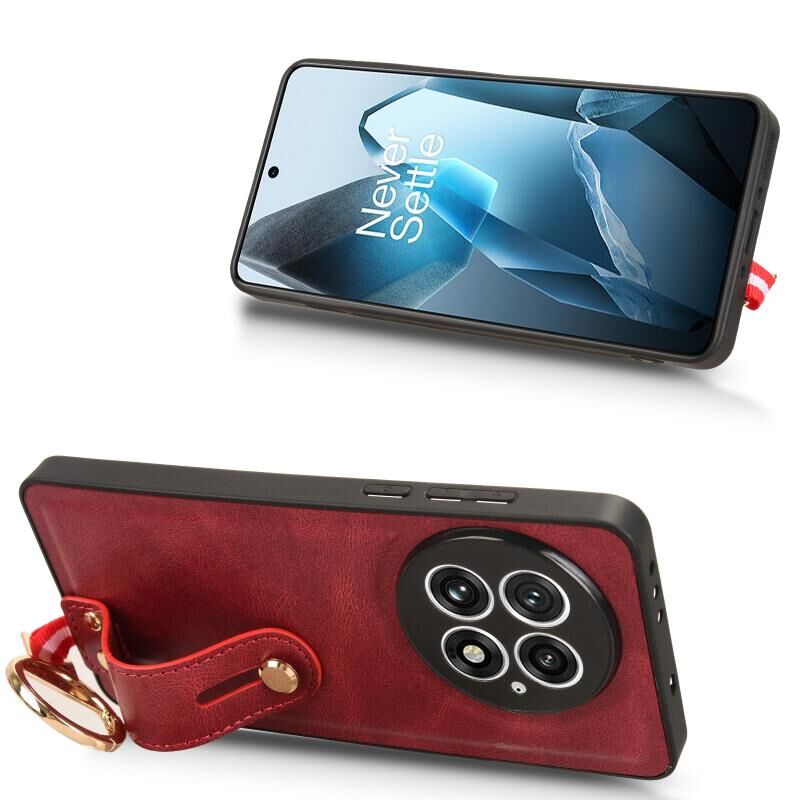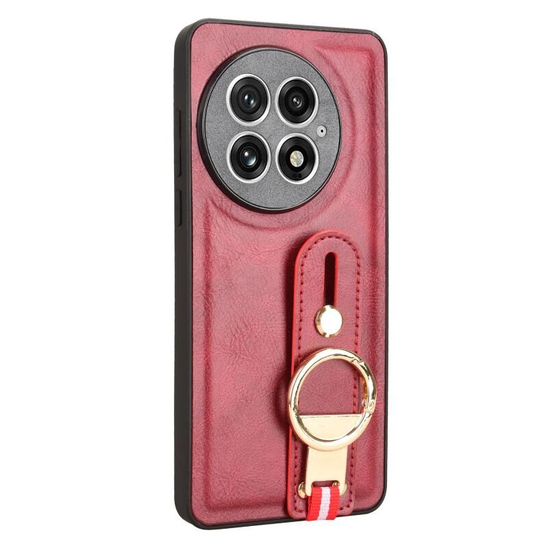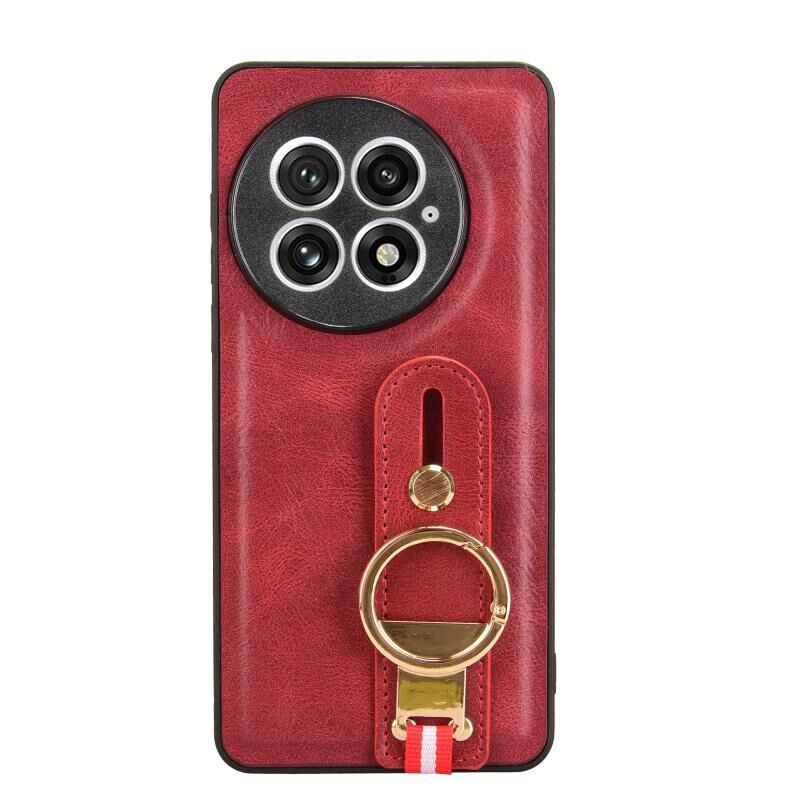 Για OnePlus 13 Wristband δέρμα πίσω τηλέφωνο υπόθεση (κόκκινο)
