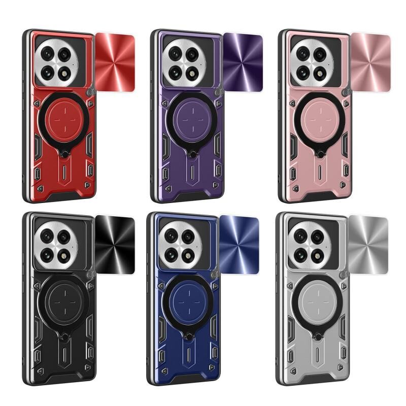 Θήκη τηλεφώνου για OnePlus 13R 5G με υφή CD, συρόμενο προστατευτικό κάμερας και μαγνητική βάση (Ροζ)