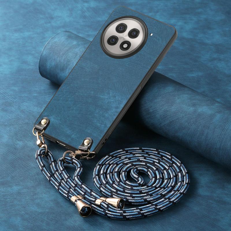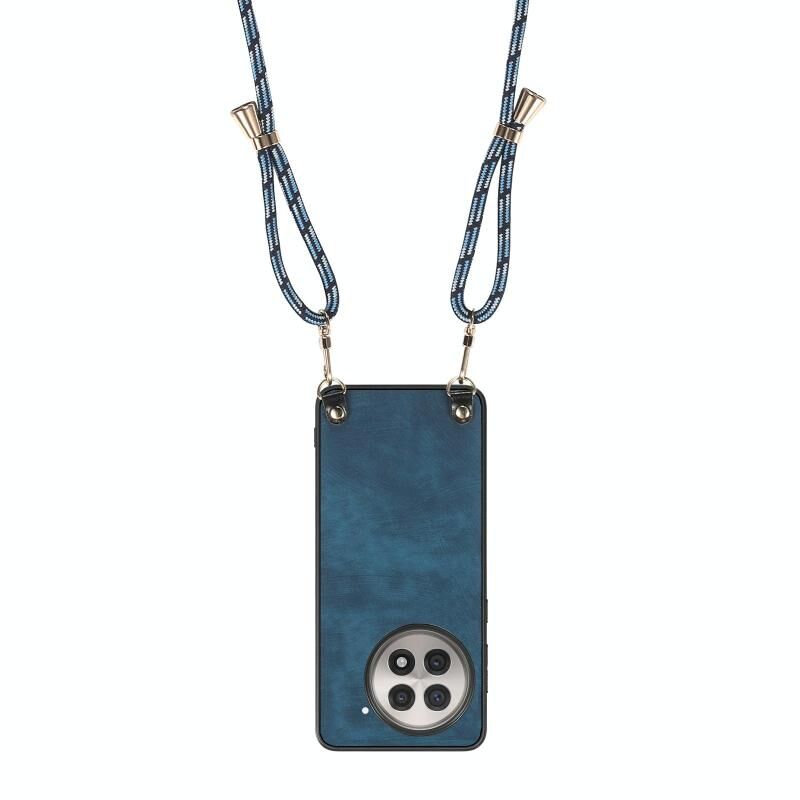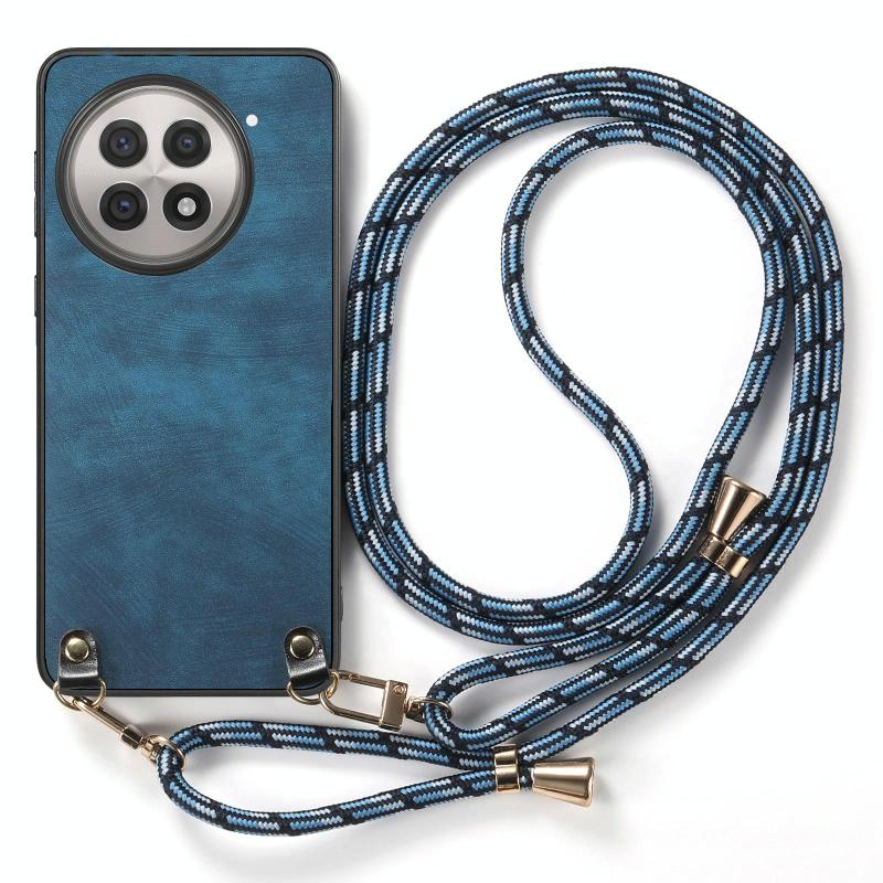 For OnePlus 13R 5G Vintage Leather PC Back Cover Phone Case with Crossbody Strap(Blue)