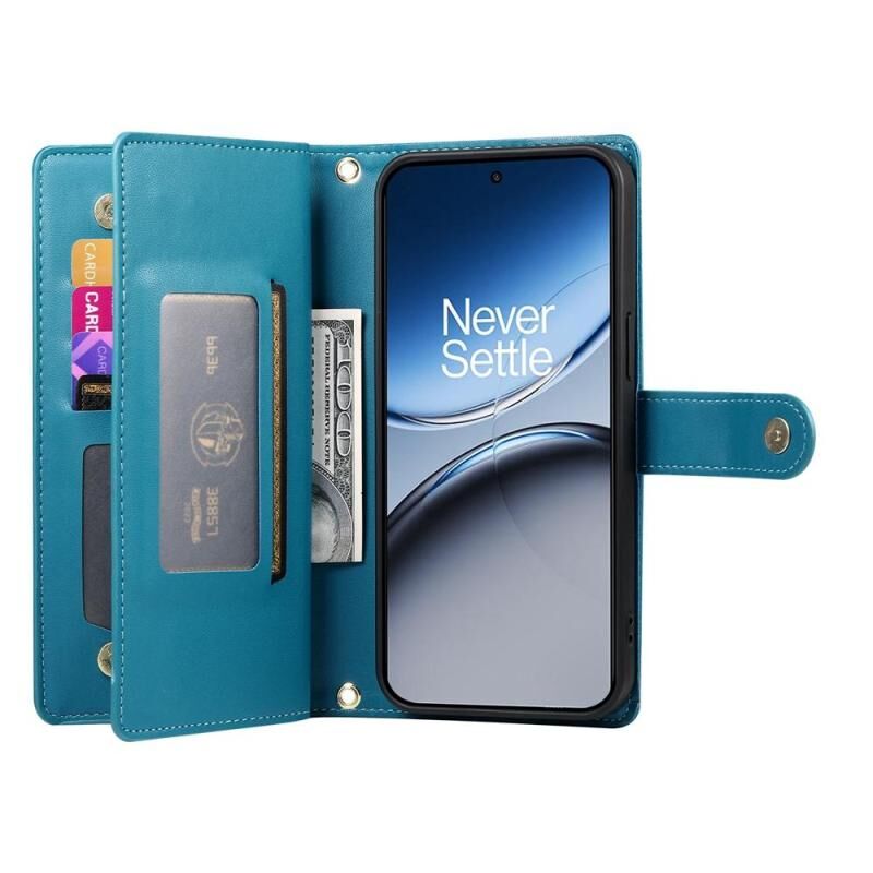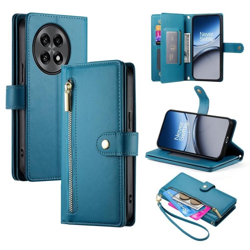 Για OnePlus 13R / Ace 5 / Ace 5 Pro Εννέα κάρτα υποδοχή φερμουάρ τσάντα πορτοφόλι τσάντα δέρμα τηλέφωνο υπόθεση (Μπλε)
