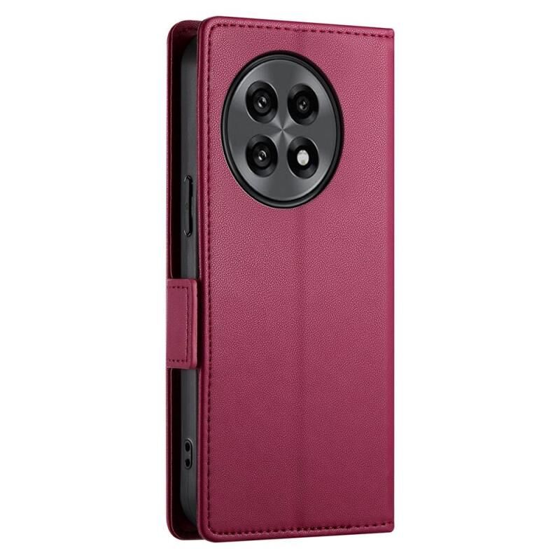 Για OnePlus 13R / Ace 5 / Ace 5 Pro πλευρά πόρπη μαγνητική παγωμένη δερμάτινη θήκη τηλεφώνου (κόκκινο κρασί)