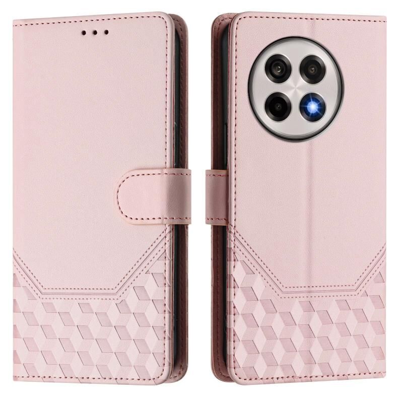 Για OnePlus 13R / Ace 5 Pro 5G Honeycomb ανάγλυφη RFID δερμάτινη θήκη τηλεφώνου (ροζ)
