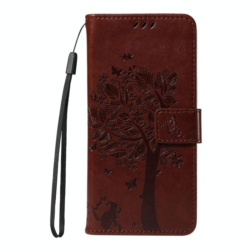 Θήκη τηλεφώνου από δέρμα με σχέδιο αναγλύφου δέντρου & γάτας για OnePlus 13R Global (Καφέ)
