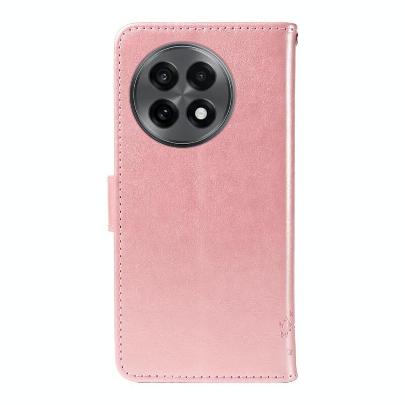 Θήκη τηλεφώνου από δέρμα με σχέδιο αναγλύφου δέντρου & γάτας για OnePlus 13R (Ροζ)