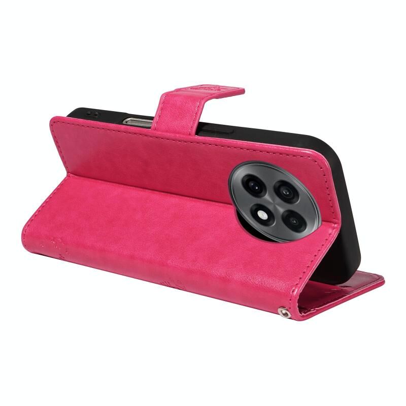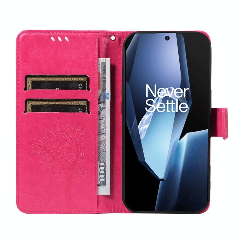 Θήκη τηλεφώνου από δέρμα με σχέδιο αναγλύφου δέντρου & γάτας για OnePlus 13R (Ροζ)