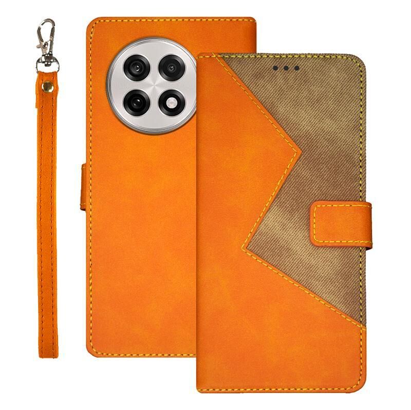 For OnePlus 13R idewei Two-color Splicing Leather Phone Case(Orange) (idewei)