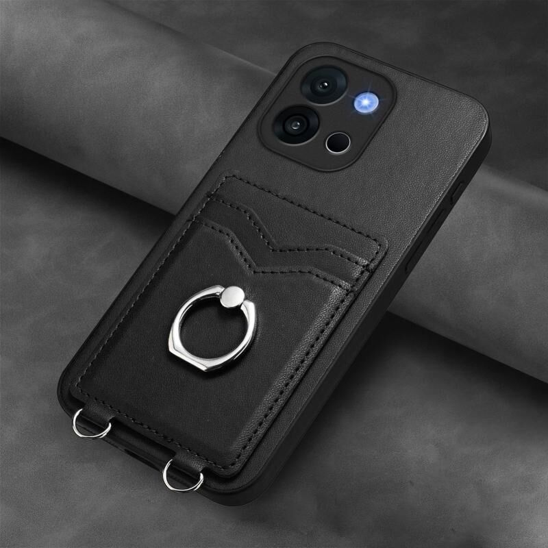 For OnePlus 13T R20 Ring Card Holder Phone Case(Black)