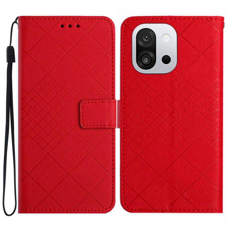 For OnePlus 13T Rhombic Grid Texture Leather Phone Case(Red)