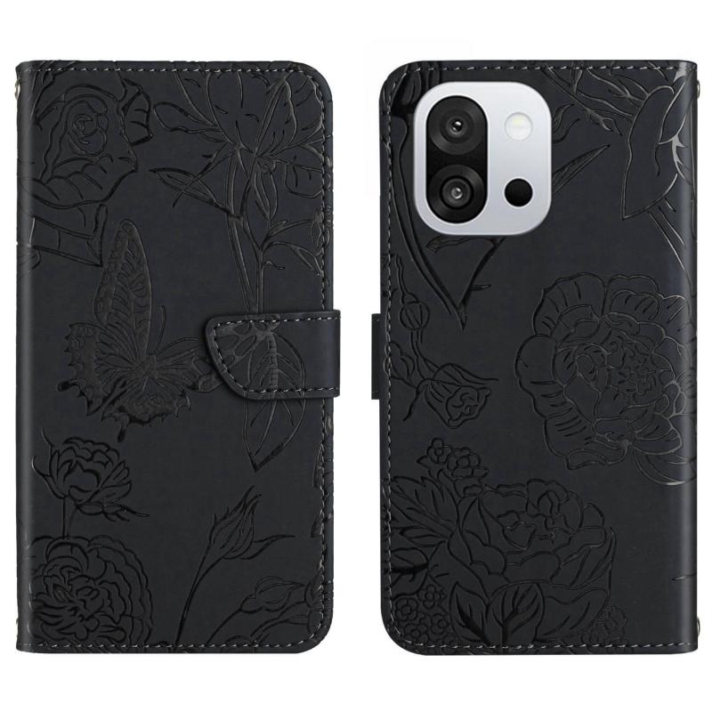For OnePlus 13T Skin Feel Butterfly Peony Embossed Leather Phone Case(Black)
