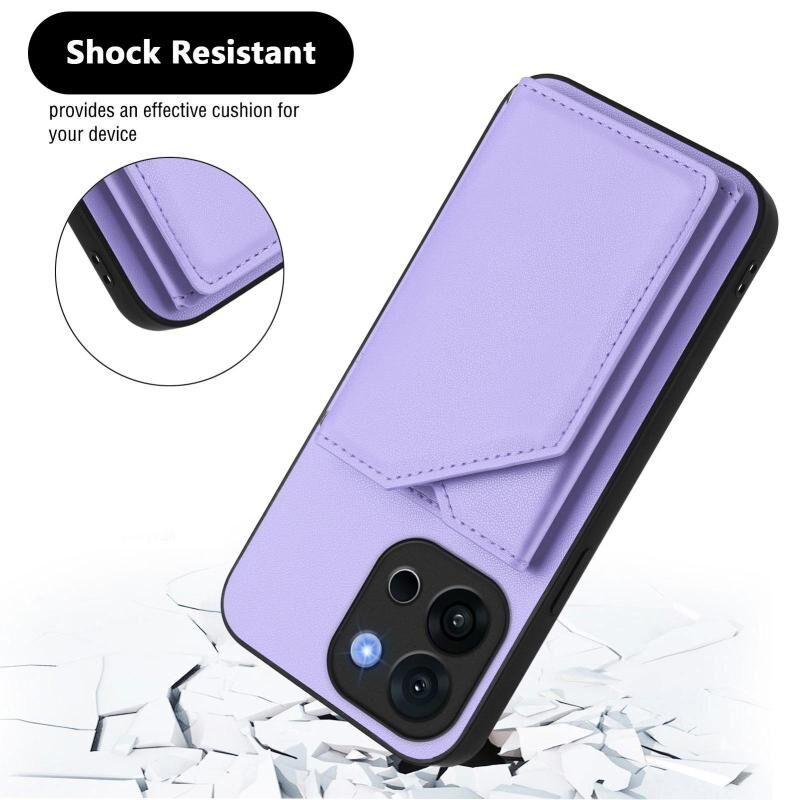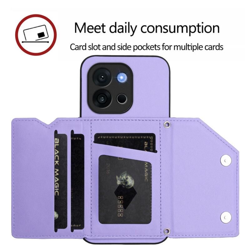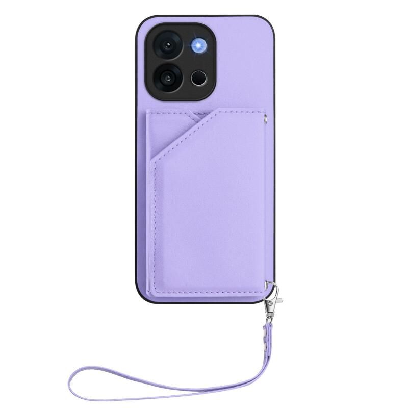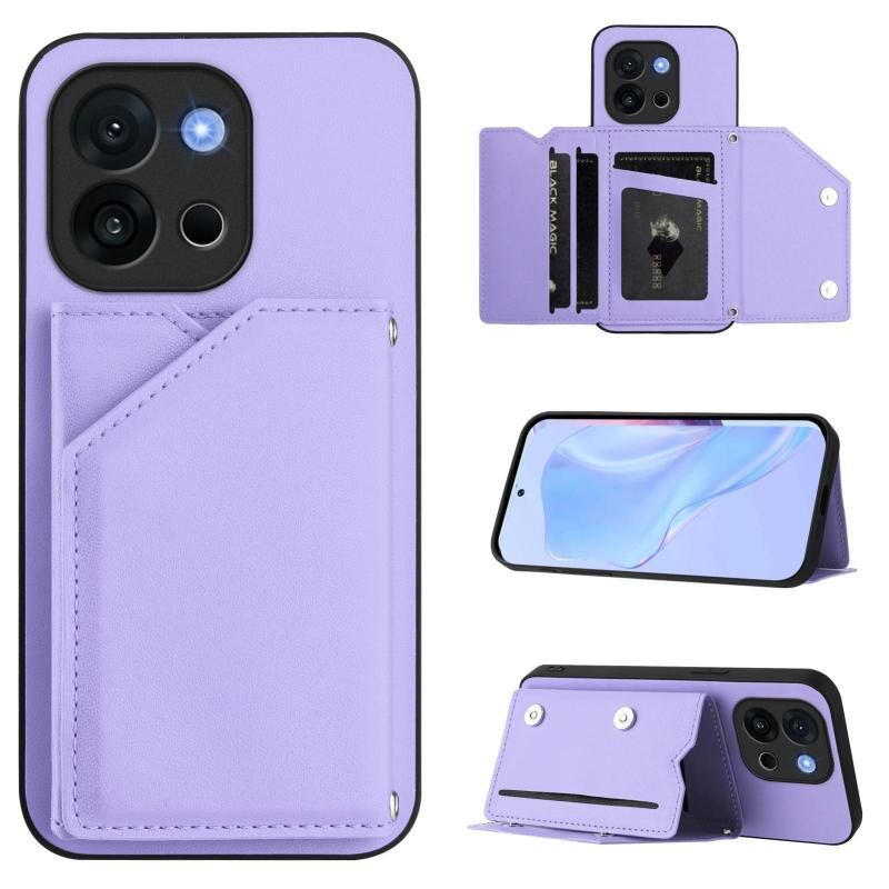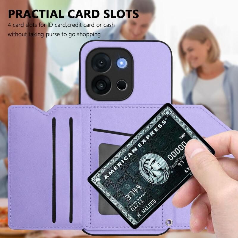 Θήκη τηλεφώνου για OnePlus 13T με αίσθηση δέρματος, τέσσερις θήκες για κάρτες και λουρί καρπού (Μωβ)