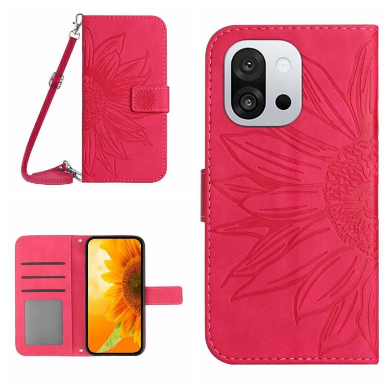 For OnePlus 13T Skin Feel Sun Flower Embossed Leather Phone Case with Lanyard(Rose Red)