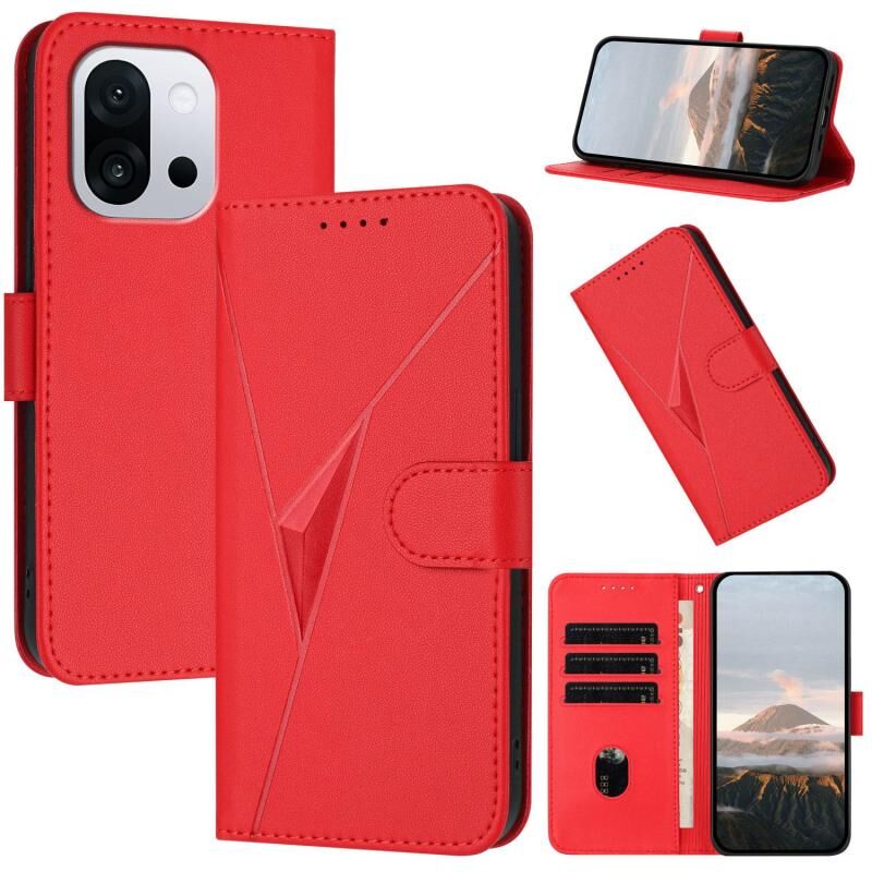 For OnePlus 13T Triangle Pattern Buckle Clasp Leather Phone Case(Red)