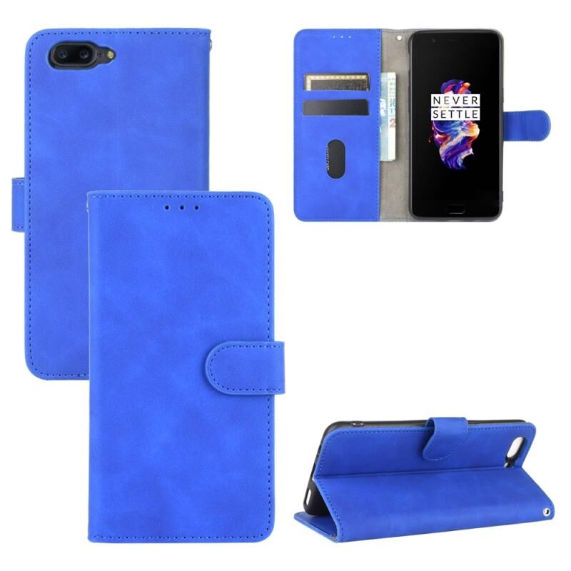 Για OnePlus 5 Αμιγές χρώμα δέρμα αίσθηση μαγνητική πόρπη οριζόντια Flip μοσχάρι υφή PU δέρμα υπόθεση με κάτοχο & υποδοχές καρτών & πορτοφόλι (μπλε)