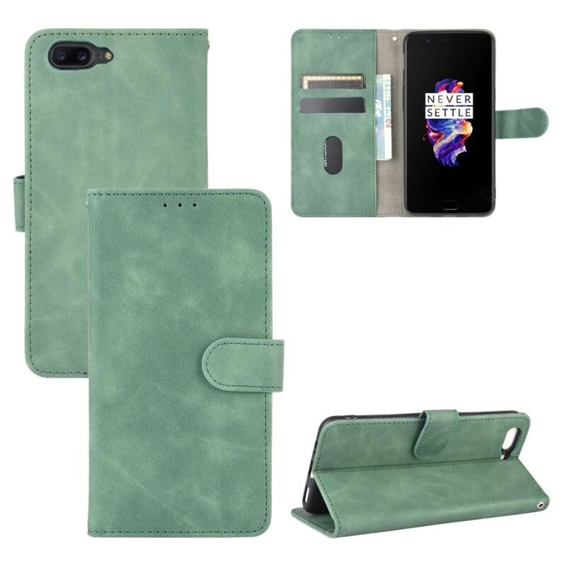 Για OnePlus 5 Αμιγές χρώμα δέρμα αίσθηση μαγνητική πόρπη οριζόντια Flip μοσχάρι υφή PU δέρμα υπόθεση με κάτοχο & υποδοχές καρτών & πορτοφόλι (πράσινο)