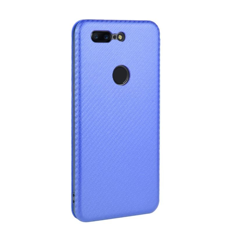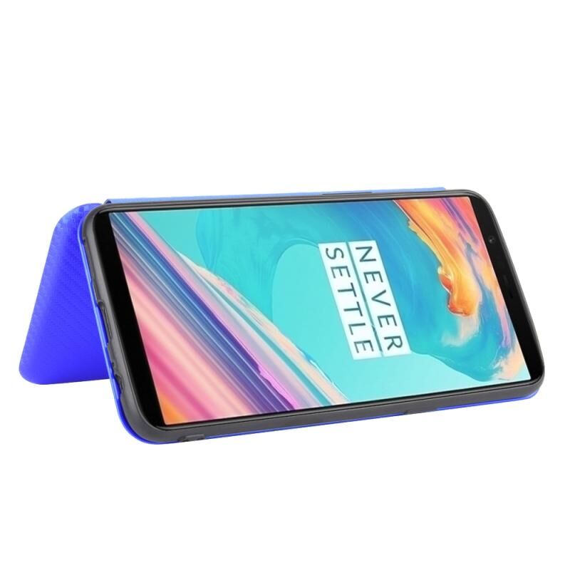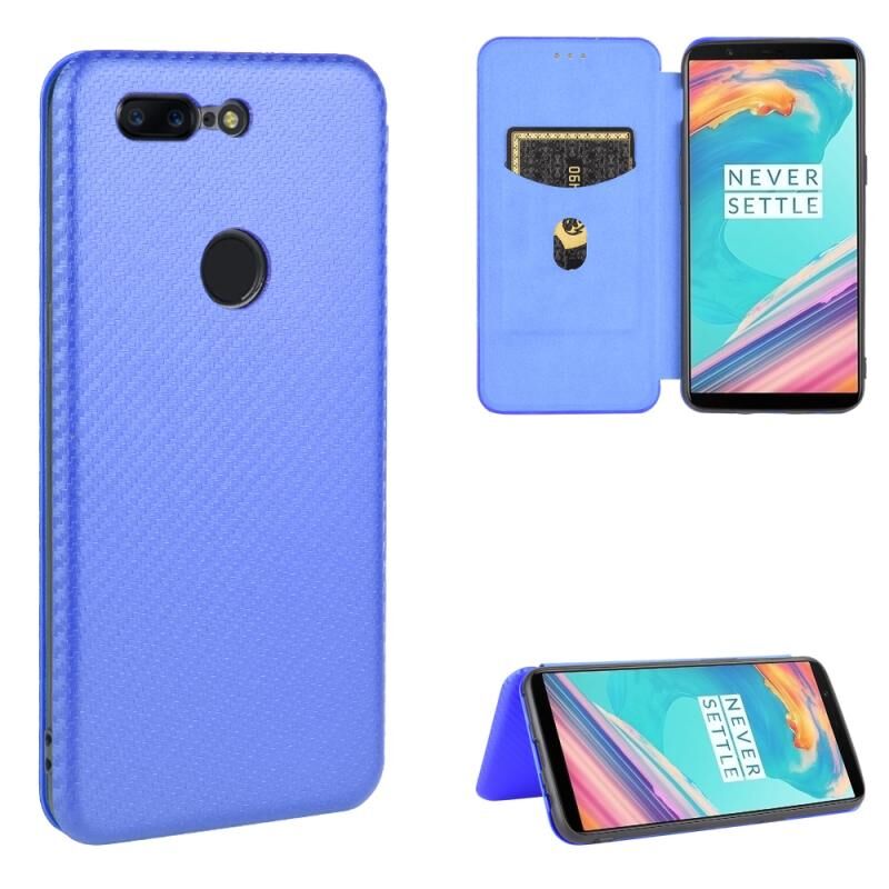 Για OnePlus 5T Carbon Fiber υφή οριζόντια Flip TPU + PC + PU δερμάτινη θήκη με υποδοχή κάρτας (μπλε)