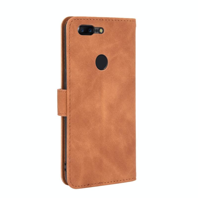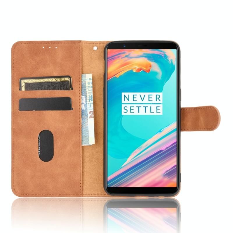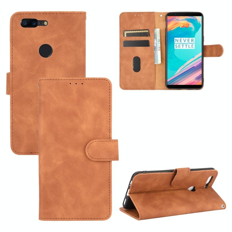 For OnePlus 5T Solid Color Skin Feel Magnetic Buckle Horizontal Flip Calf Texture PU Leather Case with Holder & Card Slots & Wallet(Brown)