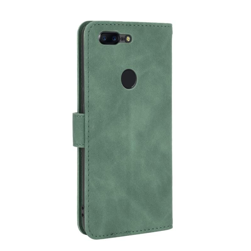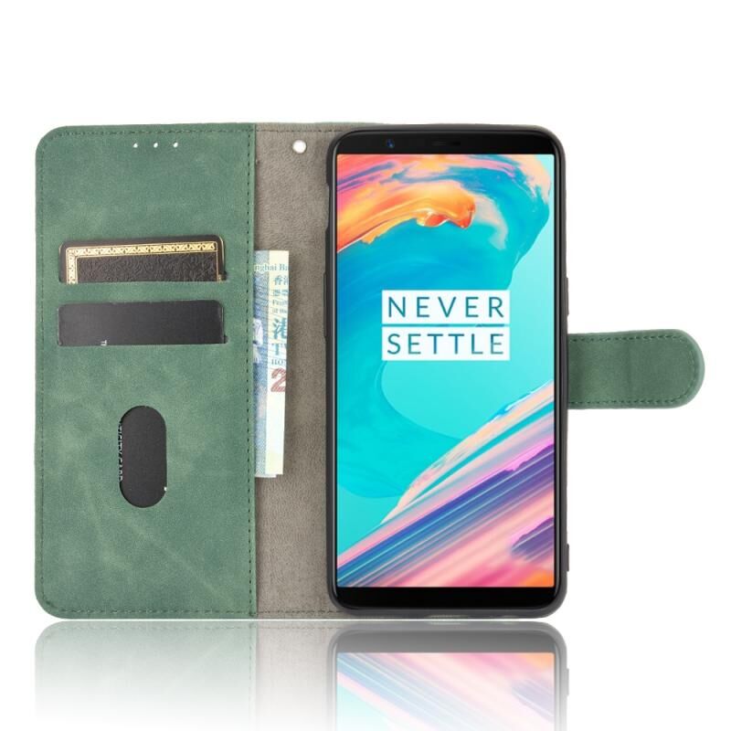 Για OnePlus 5T Αμιγές χρώμα δέρμα αίσθηση μαγνητική πόρπη οριζόντια Flip μοσχάρι υφή PU δέρμα υπόθεση με κάτοχο & υποδοχές καρτών & πορτοφόλι (πράσινο)