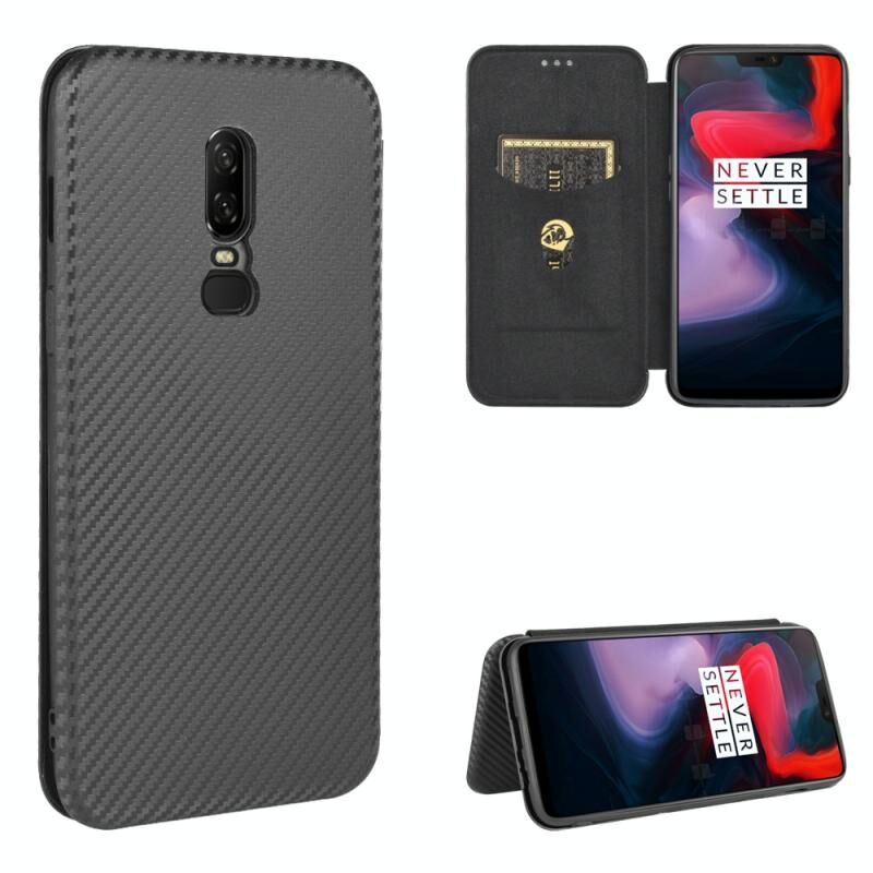 Για OnePlus 6 Carbon Fiber υφή οριζόντια Flip TPU + PC + PU δερμάτινη θήκη με υποδοχή κάρτας (μαύρο)