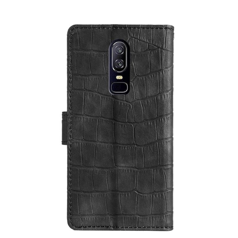 Θήκη για OnePlus 6 με υφή δέρματος κροκόδειλου, μαγνητικό κούμπωμα, οριζόντια αναδιπλούμενη από δερματίνη PU με βάση & υποδοχές καρτών & πορτοφόλι (Μαύρο)