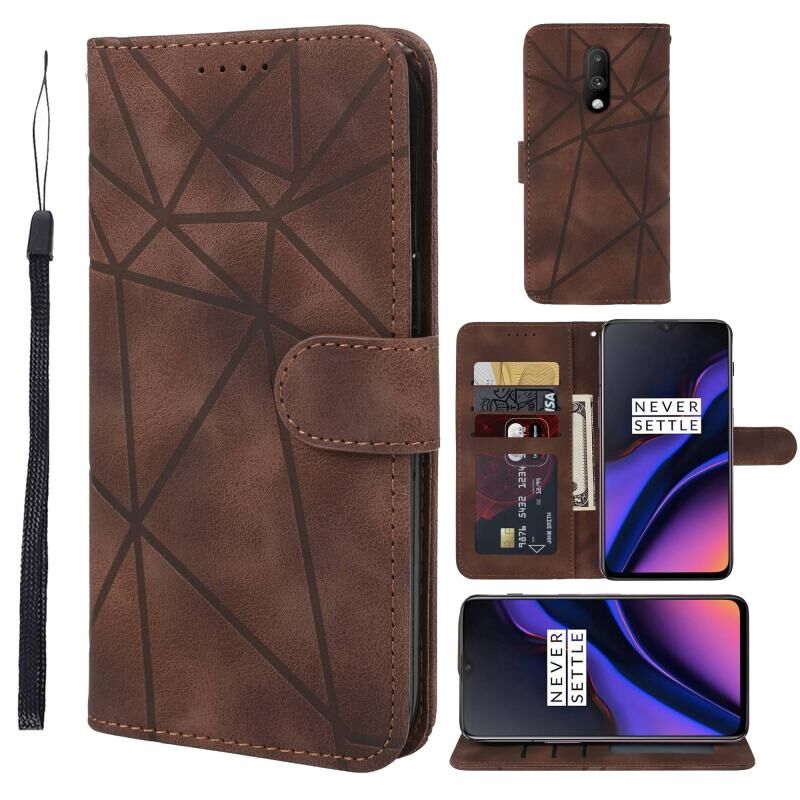 Για OnePlus 6T δέρμα αίσθηση γεωμετρικές γραμμές δέρμα τηλέφωνο υπόθεση (καφέ)