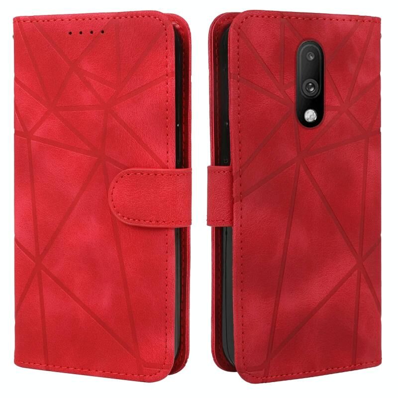 Για OnePlus 6T Skin Feel γεωμετρικές γραμμές δερμάτινη θήκη τηλεφώνου (κόκκινο)