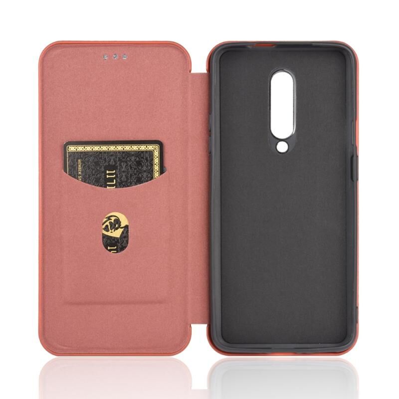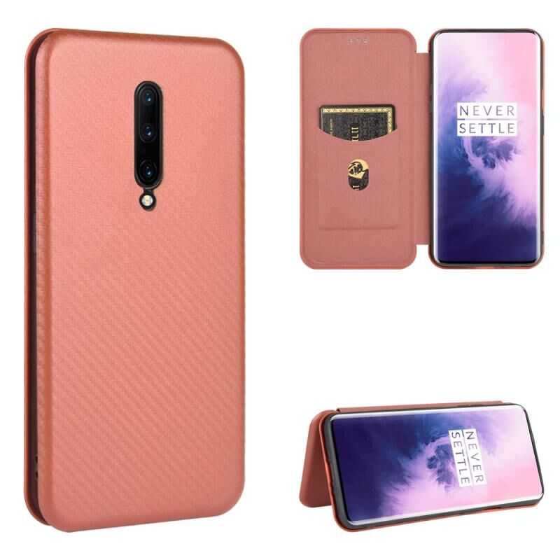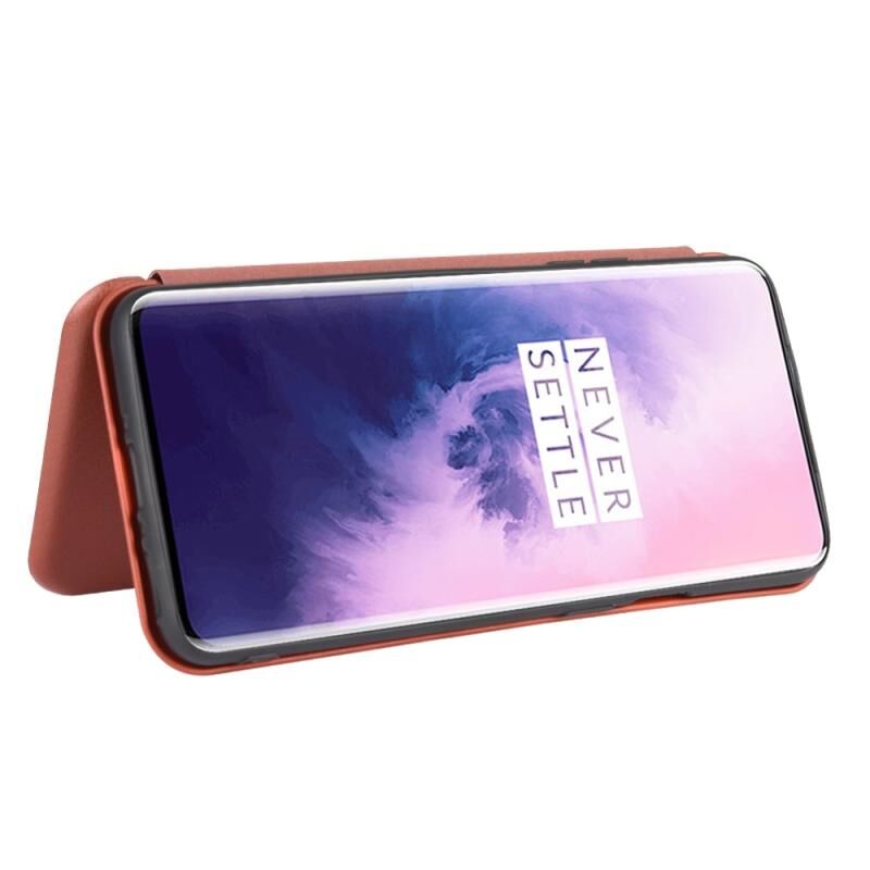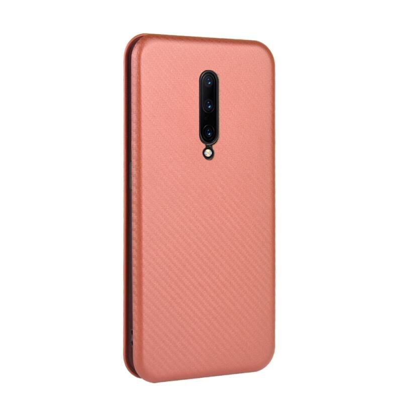 Για OnePlus 7 Pro Carbon Fiber υφή οριζόντια Flip TPU + PC + PU δέρμα υπόθεση με υποδοχή κάρτας (καφέ)