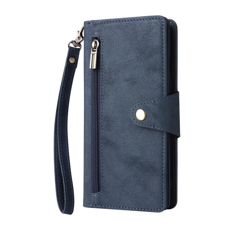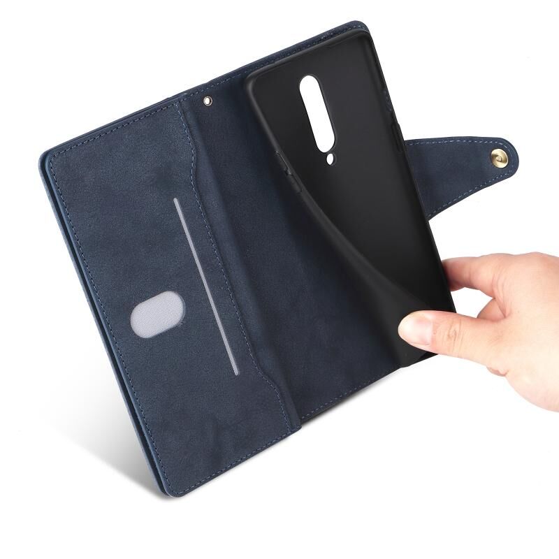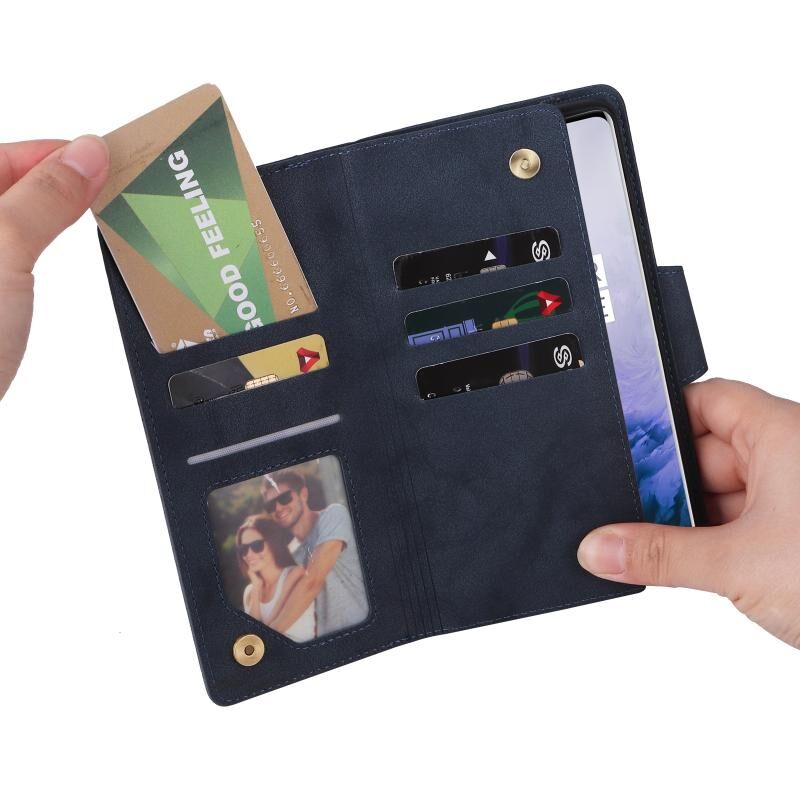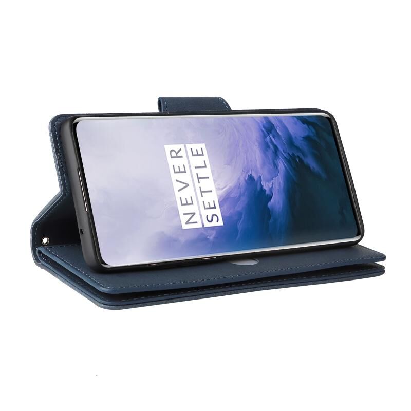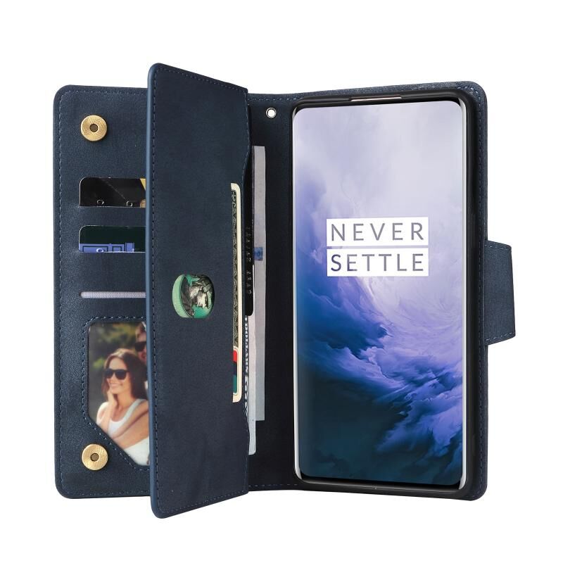 Για OnePlus 7 Pro Rivet πόρπη 9 κάρτες τρεις φορές δερμάτινη θήκη τηλεφώνου (μπλε)