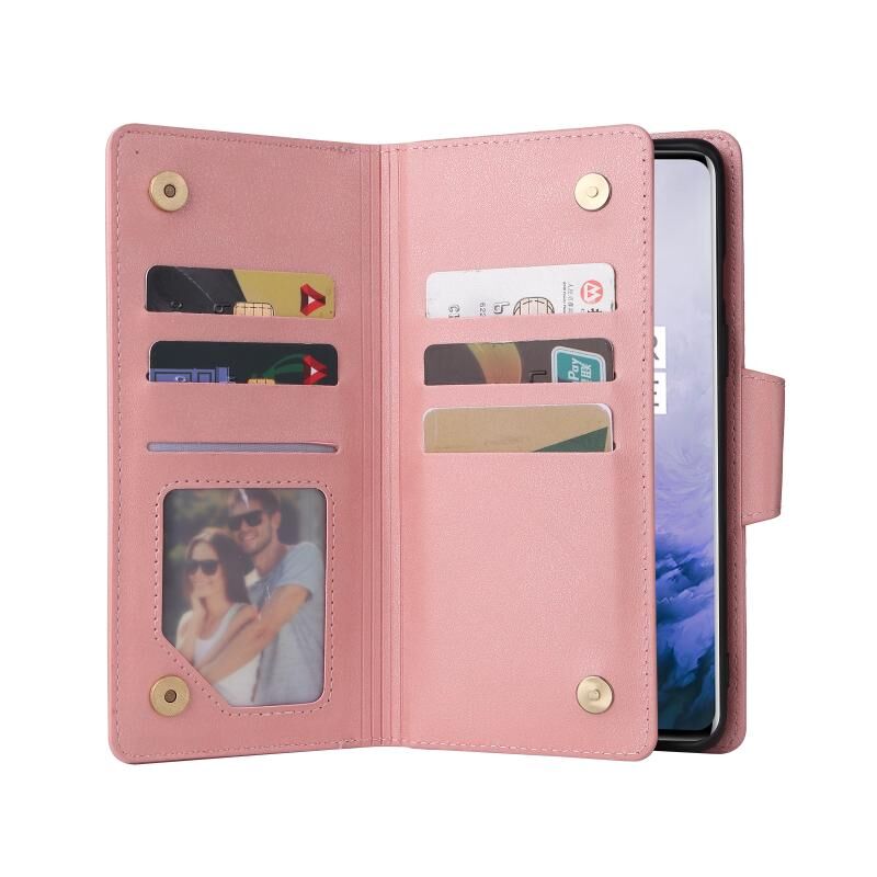 Για OnePlus 7 Pro Rivet πόρπη 9 κάρτες τρεις φορές δερμάτινη θήκη τηλεφώνου (Rose Gold)