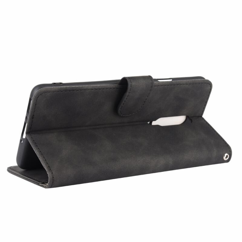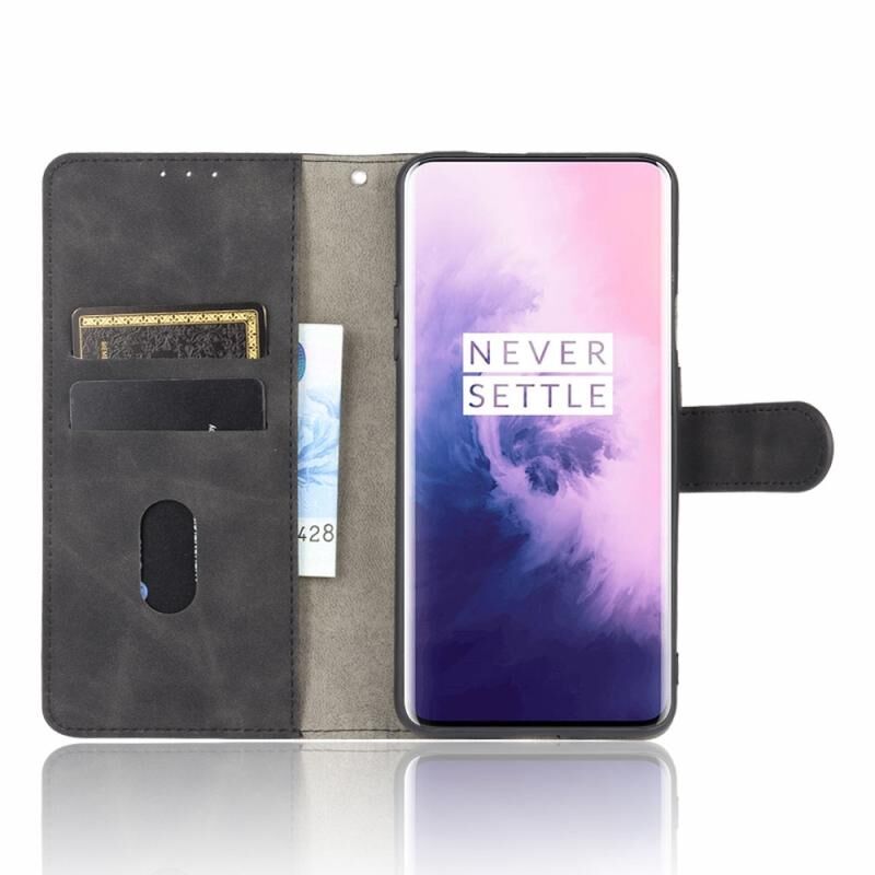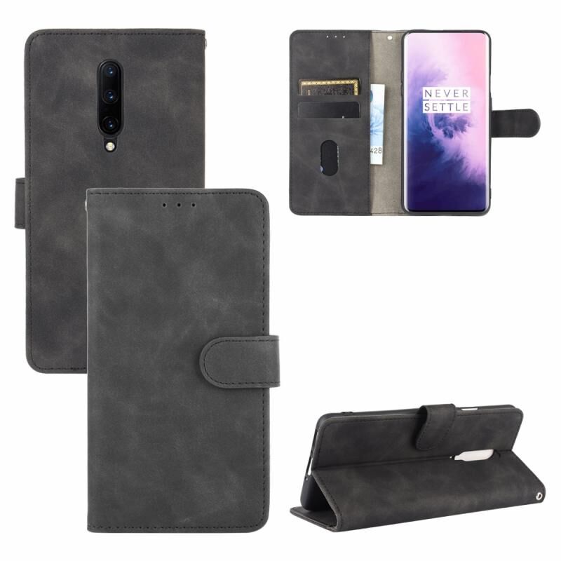 Για OnePlus 7 Pro Solid Color Skin Feel μαγνητική πόρπη οριζόντια Flip μοσχάρι υφή PU δέρμα υπόθεση με κάτοχο & υποδοχές καρτών & πορτοφόλι (μαύρο)