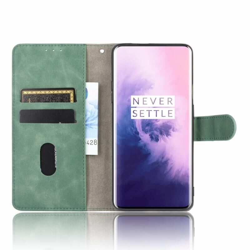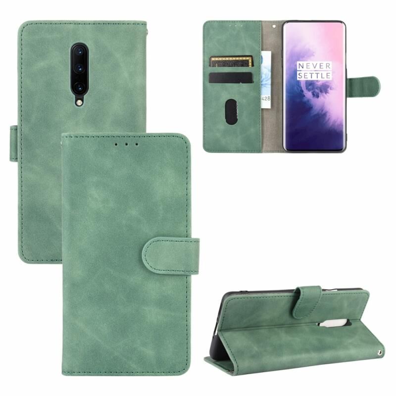 Για OnePlus 7 Pro Solid Color δέρμα αίσθηση μαγνητική πόρπη οριζόντια Flip μοσχάρι υφή PU δέρμα υπόθεση με κάτοχο & υποδοχές καρτών & πορτοφόλι (πράσινο)